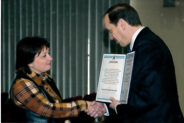 Ну и, наконец, звучит: «В номинации «Негативно, но объективно» победителем признается журналист газеты «Эвенкийская жизнь» Светлана Валеева (Романовская) — за материал «Эвенкийскому ОВД нужна надежная крыша». Диплом и ценный подарок, а вернее, паспорт к нему (чтобы не загружать коробками руки победителей, подарки выдавались уже после церемонии) лауреату конкурса вручает уполномоченный по правам человека в Красноярском крае Марк Денисов. Марк Геннадьевич также поблагодарил журналистов за грамотный и тактичный подход к освещению милицейских проблем, в частности, по содержанию следственного изолятора в Туре.