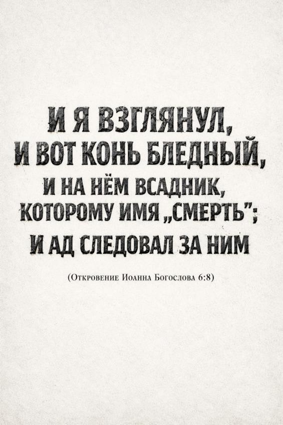 — И было утро, но света не стало. Ибо восстали дымы от края и до края земли, и свились они в саван черный, и закрыли очи Господа, дабы не видели они срама творения Его. И воздух стал густ от пепла, словно прах сожженных городов осел в легких живых.