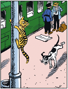 Мимо по перрону проходили запоздавшие пассажиры, носильщики таскали и возили на тележках чемоданы… Никто не обращал никакого внимания на скулящую собаку и фыркающую кошку на фонарном столбе.