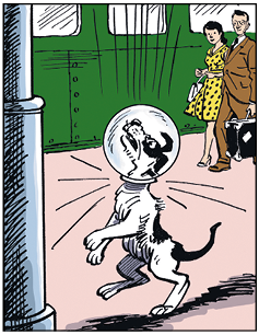 – Ух, какой ты умница! – сказал продавец. – А знаешь, что ты очень похож на ту самую собаку Лайку, которую отправили в космос? Как раз в этой газете есть её фотография. Вон, смотри! – кивнул он в сторону стоящего рядом дядьки.