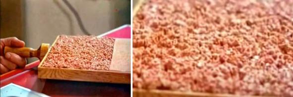 В лотке три образца, один из которых гладкий, второй шероховатый, третий образец слева ноздреватый, сильно изрытый.