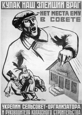 В приказе ОГПУ СССР от 2 февраля 1930 г. № 44/21 «О мероприятиях по ликвидации кулачества как класса»64 говорилось, что «в целях наиболее организованного проведения ликвидации кулачества как класса и решительного подавления всяких попыток противодействия со стороны кулаков мероприятиям Советской власти по социалистической реконструкции сельского хозяйства — в первую очередь, в районах сплошной коллективизации — в самое ближайшее время кулаку, особенно его богатой и активной контрреволюционной части, должен быть нанесен сокрушительный удар».
