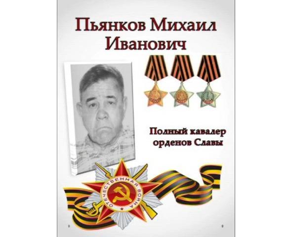 Приказом Министра обороны Российской Федерации от 19 апреля 1996 года (№232) Пьянков Михаил Иванович в порядке перенаграждения награжден орденом Славы 1-й. Стал полным кавалером ордена Славы.