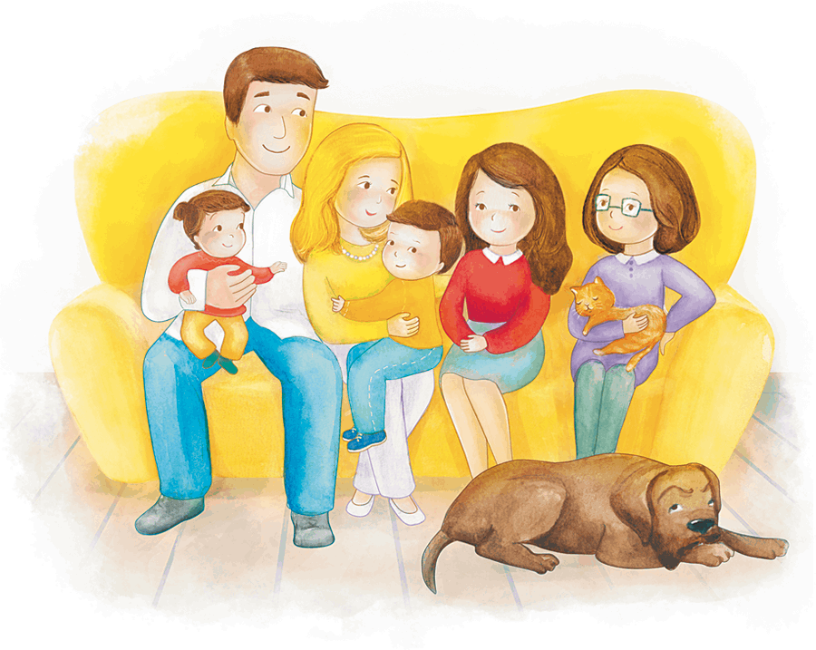 Я живу с родителями, сёстрами, собаками и кошками – это моя семья.