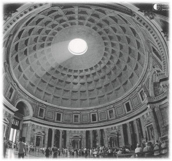 незаметно он дошёл до Пантеона Агриппы. Уникальность Пантеона в своё время его ошеломила. Купол — огромная идеальная полусфера с отверстием в центре диаметром не меньше восьми метров. но дождь никогда не попадает внутрь даже при самых сильных ливнях — так рассчитана аэродинамика восходящего потока воздуха и такова мощь динамического напора! Чудо инженерного решения. и это римляне соорудили 2000 лет назад! А портик украсили циклопическими гранитными колоннами, вывезенными из древнего египта, как и четырнадцать подлинных египетских обелисков, установленных по всему вечному городу от народной площади перед парками виллы боргезе до Пантеона и собора святого Петра. 10