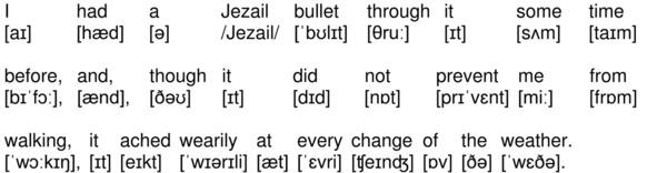 I had a Jezail bullet through it some time before, and, though it did not prevent me from walking, it ached wearily at every change of the weather.