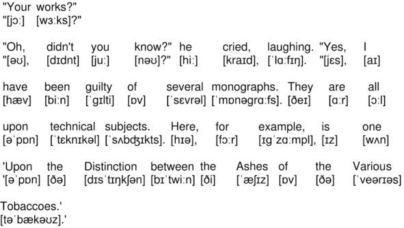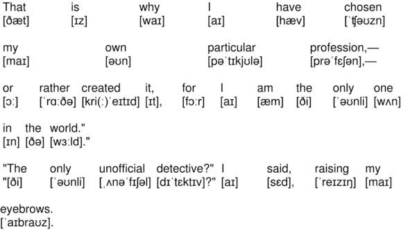 «Some facts should be suppressed, or at least a just sense of proportion should be observed in treating them. The only point in the case which deserved mention was the curious analytical reasoning from effects to causes by which I succeeded in unraveling it.»