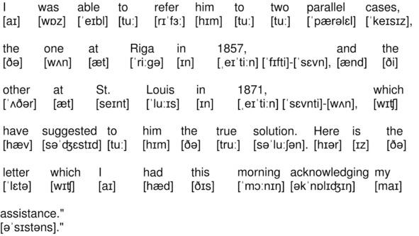 I was able to refer him to two parallel cases, the one at Riga in 1857, and the other at St. Louis in 1871, which have suggested to him the true solution. Here is the letter which I had this morning acknowledging my assistance.»