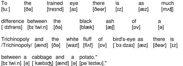 To the trained eye there is as much difference between the black ash of a Trichinopoly and the white fluff of bird’s-eye as there is between a cabbage and a potato.»