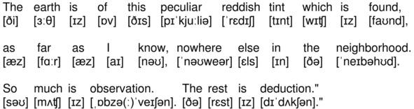 The earth is of this peculiar reddish tint which is found, as far as I know, nowhere else in the neighborhood. So much is observation. The rest is deduction.»