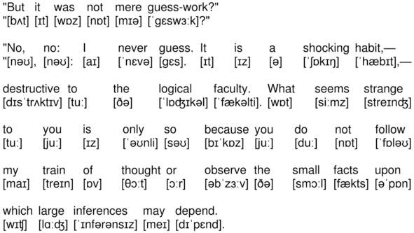 «No, no: I never guess. It is a shocking habit, — destructive to the logical faculty. What seems strange to you is only so because you do not follow my train of thought or observe the small facts upon which large inferences may depend.