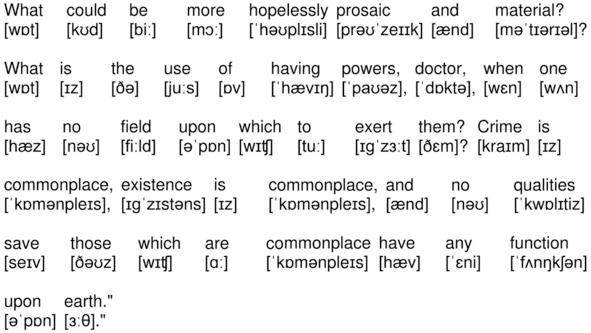What could be more hopelessly prosaic and material? What is the use of having powers, doctor, when one has no field upon which to exert them? Crime is commonplace, existence is commonplace, and no qualities save those which are commonplace have any function upon earth.»