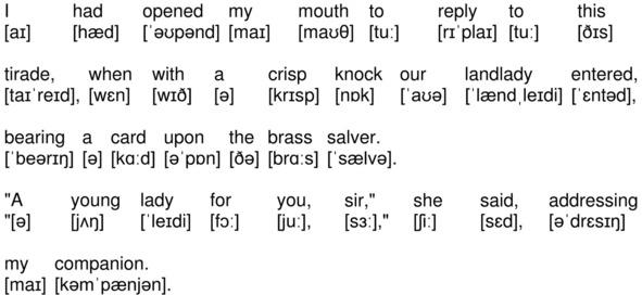 I had opened my mouth to reply to this tirade, when with a crisp knock our landlady entered, bearing a card upon the brass salver.