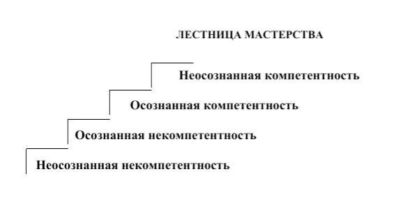 Важно помнить, что процесс роста занимает время. Для каждого оно индивидуально. Процесс изменения / научения проходит через четыре стадии. Первая– это стадия «неосознанной некомпетентности», когда мы не знаем, что оказывается, можно действовать по-другому, более эффективно. После этого мы переходим на стадию «осознанной некомпетентности». Приняв решение развивать в себе новые навыки, мы постепенно начинаем перемещаться в область «осознанной компетентности», когда мы прилагаем сознательные усилия, чтобы реализовывать новые стратегии поведения. И, наконец, новые стратегии входят в привычку, и мы начинаем действовать на уровне «неосознанной компетентности».