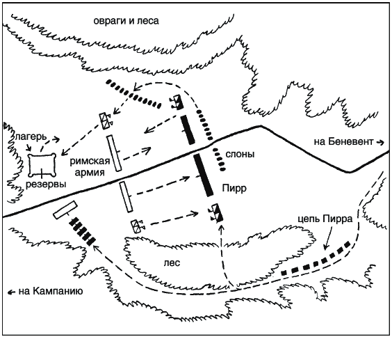 Относительно варваров Киней сообщил, что о них говорят как о довольно опытных воинах. Несколько их племен составили одну из тех конфедераций, что быстро создаются и быстро распадаются у варваров. Недавно они приняли участие в войне с самнитами, крепкими горцами центрального полуострова, у которых, вероятно, можно будет получить наемников. Пирр решил отправить послов к самнитам и стал дожидаться подхода остальных войск, имея при себе всего 2 тысячи воинов и двух слонов.