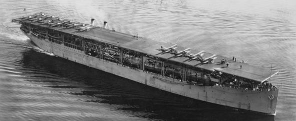 CV-1 «Лэнгли» (USS CV-1 Langley) (водоизмещение 11500 тонн, длина 165.2 метра, скорость 15 узлов, 34 самолёта), 1928 год