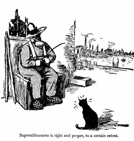 "Everybody is superstitious," said the night-watchman, as he gave utterance to a series of chirruping endearments to a black cat with one eye that had just been using a leg of his trousers as a serviette; "if that cat 'ad stole some men's suppers they'd have acted foolish, and suffered for it all the rest of their lives."