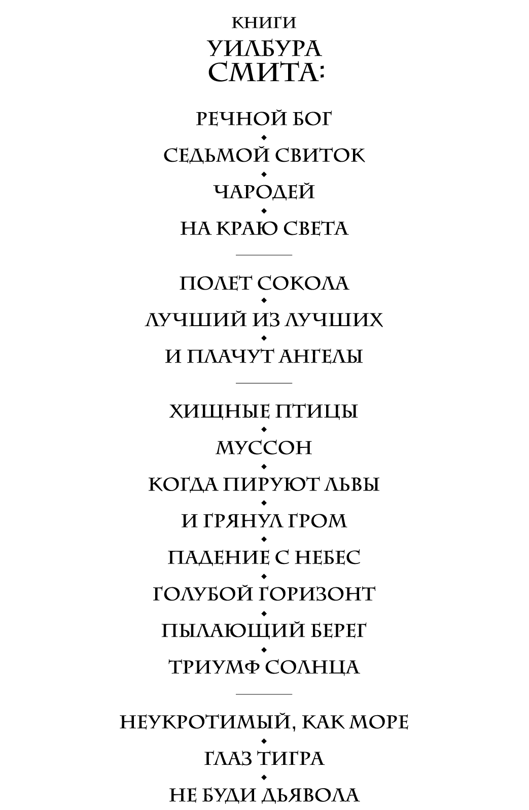 Уилбур Смит (1933–2021) родился в Северной Родезии (Южная Африка). Его перу принадлежат 49 историко-приключенческих и остросюжетных романов. За свои заслуги в области литературы Уилбур Смит удостоен Британской национальной книжной премии.