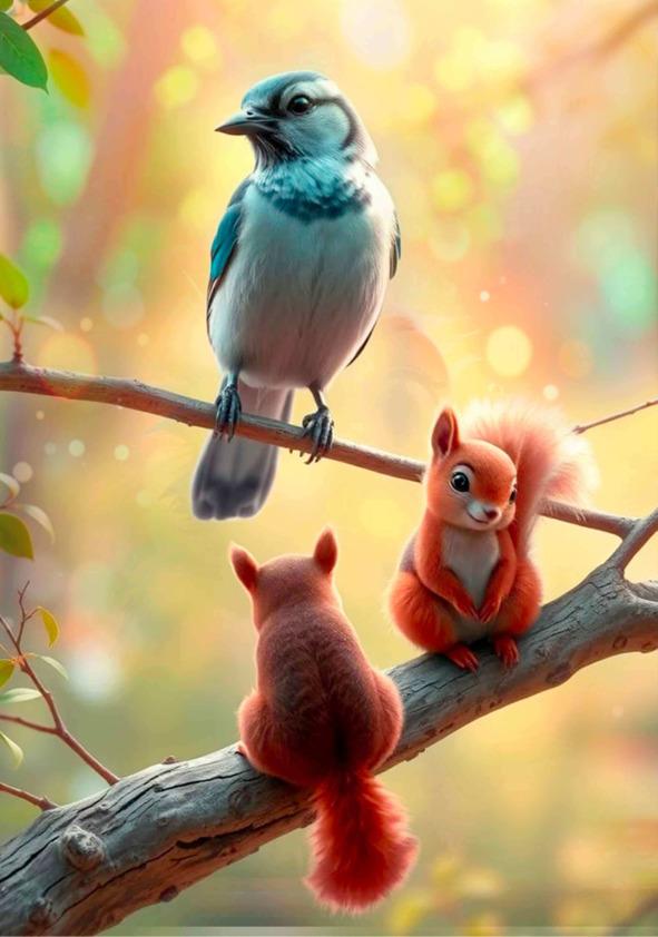 Новый день начался совсем неожиданно. С первыми лучами солнца на соседнем дереве громко и возбуждённо начала возмущаться Сойка в адрес своей многолетней соседки Белочки. Распуская хвост и крылья, она подпрыгивала на ветке, бесперебойно стрекоча.