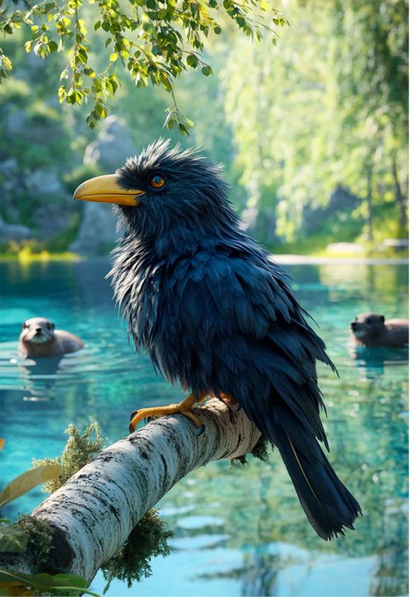 — Ах! Это же молодая пара бобров! — вскликнула Ворона. — Они простудятся в ледяной родниковой воде! Срочно нужно лететь — им нужна моя помощь!