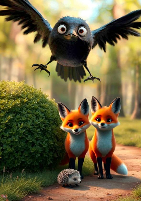 Летит над лесом, а сама размышляет: «Стараюсь, стараюсь, всё с добром да с душой! Хочу помочь, а они, бессовестные, ещё и грубят! Какая я несчастная!» Вдруг видит: Лиса-мама греется на солнышке, нежится, потягивается… А у норки её лисята охотятся друг на друга! Один вцепился в ухо брату и ну его трепать, того и гляди оторвёт совсем! Вырвался сорванец из пасти братца и давай его лапками мутузить! Ворона как каркнет во всё горло:
