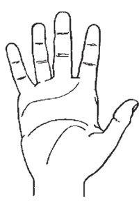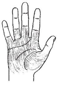 Предварительно протестируйте исследуемую ладонь и пальцы на гибкость. Для этого попросите человека вытянуть его доминантную (обычно правую) руку, повернув ее ладонью вверх. Далее пассивной (обычно левой) рукой он должен попытаться отвести пальцы назад по направлению к телу в той степени, в какой они в состоянии изогнуться. По величине образующегося угла можно судить о гибкости ладони.