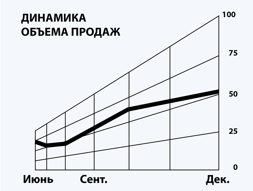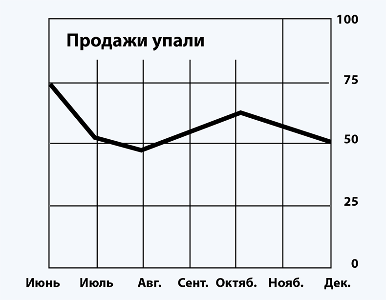 Допустим, вы работаете менеджером по продажам. И продажи у вас, о горе, упали к концу года. И вы понимаете, что вот такой (справедливый) график показывать руководству нельзя.