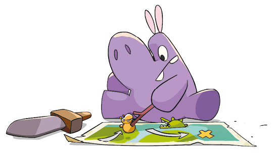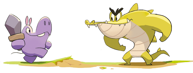 И вот беда, бегемотика кто-то обидел! Он вышел на тропу войны и готов уничтожить всех врагов. А врагами, допустим, станут крокодилы.