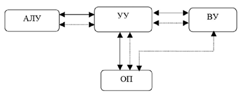 • арифметико-логическое устройство (АЛУ), выполняющее арифметические и логические операции;