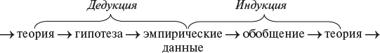Существующие теории и сбор эмпирических данных социологи связывают в общий процесс исследовательской работы посредством дедукции (от лат. deductio — выведение) — логических построений, выводящих из «общего» — теоретических положений «частное» — гипотезы, допускающие проверку фактами. Полученные эмпирические данные и построение новой теории социологи связывают посредством индукции (от лат. inductio — наведение) — логических построений, приводящих от «частного» — отдельных фактов к «общему» — обобщению, позволяющему строить концептуальную модель. Содержание эмпирической социологии составляет фундамент науки о социальной обусловленности явлений, определяет основу ее развития. Содержание теоретической социологии определяет достигнутый уровень и направление дальнейшего развития науки о социальной обусловленности явлений (рис. 1).