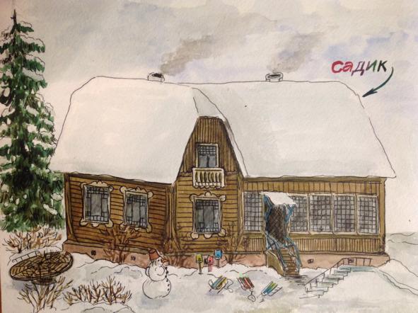 От бани дорога к воротам. При въезде — домик для прислуги. Сейчас там жила семья Ложкиных, они сторожили садик, мели дорожки летом и убирали снег зимой, во всём помогали вести наше беспокойное хозяйство. Лёва Ложкин, сын сторожа, потом работал в ДК «Урал» в радиоузле. Огромная ель росла между этими двумя роскошными дачами. Я подумала, что посажена она была очень давно, ещё хозяевами дач для зимы, и что её украшали в те счастливые времена к Новому году. Потому что эти два дома были с печами и можно было в них жить и зимой. Конечно же, в дачах этих жили дети и их очень любили. Дома были высокими, двухэтажными, но мы никогда не поднимались на второй этаж, я даже и не помню, чтоб была какая-либо лестница туда.