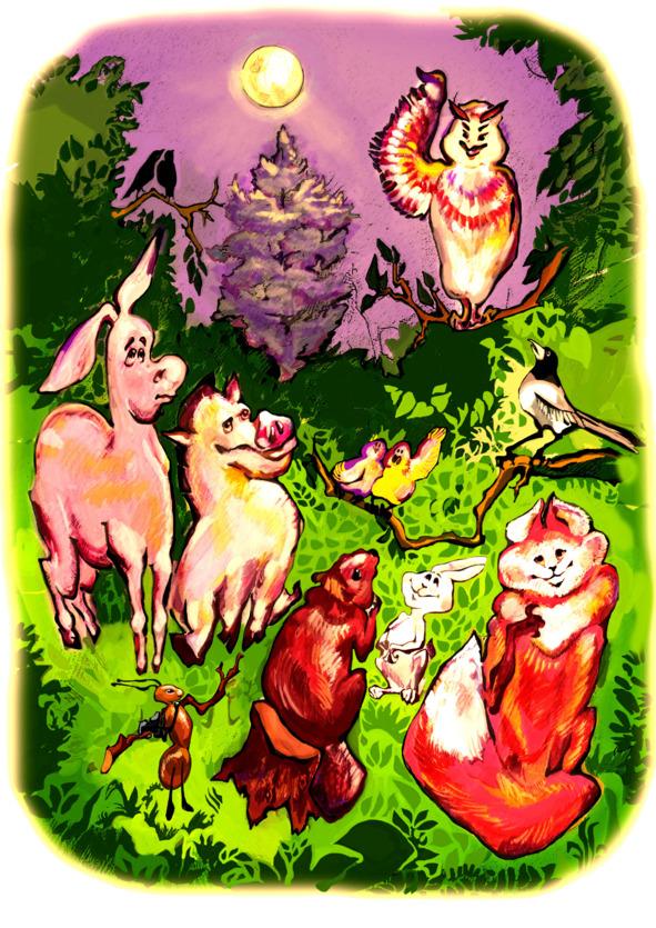 — Что ты нам скажешь, Мудрая Сова? — обратились к ней наперебой Звери и Птицы. — Какое дерево следует признать королём всех лиственных и хвойных?