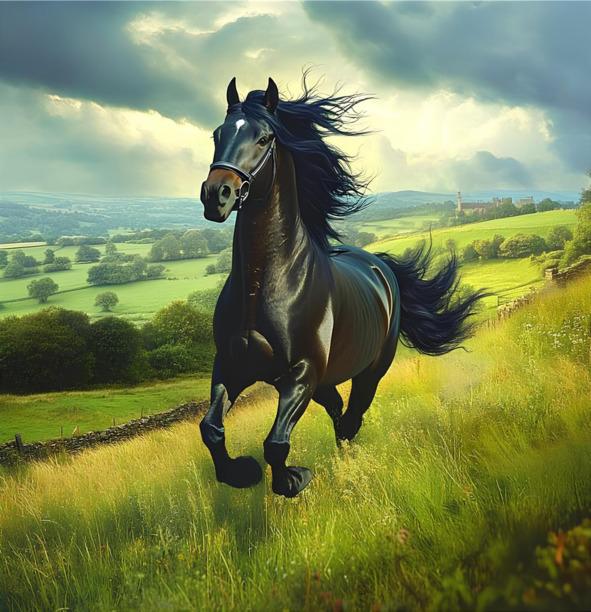 «Иду по бескрайнему полю с высокой жёлтой травой, мои длинные рыжие волосы раздувает тёплый ветерок, дующий мне навстречу, мои голубые глаза сливались с цветом неба, на мне была школьная форма в клетку бело- чёрную. Юбочка до колен, красные кроссовки на ногах, блузка голубого оттенка с клетчатой жилеткой. Я не понимала, что здесь делаю, зачем я здесь? Осмотревшись вокруг себя, увидела, что это обычный летний день, когда солнце, словно наполненное жаждой, изливало свои лучи на землю, передавая тепло и свет. Вокруг пахло свежестью и цветами, а в воздухе порхали яркие и прекрасные бабочки, демонстрируя свои тоненькие и изящные крылья. В этот момент, стоя в самом центре этой благодатной природы, словно оказалась в раю. Все вокруг было полно тишины, спокойствия и невидимой гармонии. Но в этой идиллии всегда скрывается нечто неожиданное, что способно внезапно нарушить покой. Как вдруг, раздался громкий, импульсивный стук копыт, которые с силой ударили о землю, словно желая выразить свою мощь. Этот звук был сигналом к разрушению всей ранее существовавшей гармонии. И вот, в поле, посреди высокой жёлтой травы, появился он — величественное создание, которое было, словно воплощение могучей стихии ветра. Чёрная грива этого существа разлеталась в воздухе, переплетаясь с летним и тёплым ветерком, как будто в танце с природными стихиями. Он бежал с грациозностью и величественностью, перебирая ноги, словно в такт с невидимой музыкой природы. Это было такое яркое и изумительное зрелище, что слова не могли описать его красоту, и возникала мысль, что это можно было бы сравнить с неким чёрным жемчугом– редким и ценным камнем, который олицетворяет в себе царство, где время остановилось в своем беге.