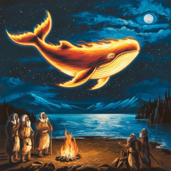 В ночь полнолуния, когда всё поселение следило за приготовлениями шамана, в небе появилась необычайно яркая звезда. Шаман сразу же объявил: это и есть знак. Обряд нужно начинать немедленно. Вся деревня встала в круг вокруг шамана, люди надели праздничные одежды и выучили песню, заранее подготовленную шаманом. Как только запели, звезда вспыхнула ещё ярче и начала стремительно расти. Чем слаженнее звучал хор, тем ярче становилось ночное небо. Вскоре звезда уже напоминала солнце среди ночи. Вспышка ослепила участников хоровода, и пение на мгновение стихло, пока люди протирали глаза. А когда зрение вернулось, они не поверили своим глазам: над водой зависла звезда, превратившаяся в огромного огненного кита, который величественно взирал на хоровод.