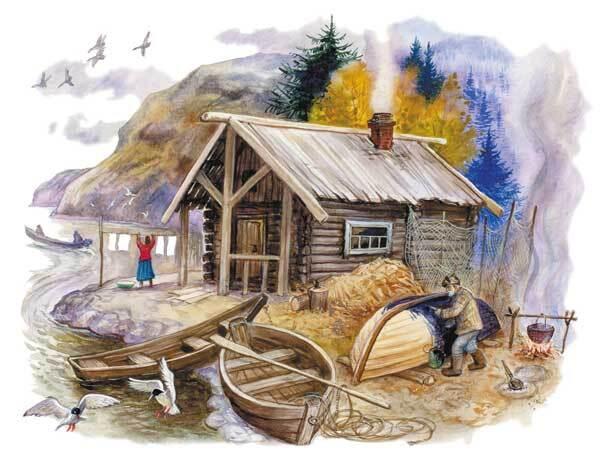 Вечерами в избушке становилось людно и шумно. Рыбаки ужинали, курили, щёлкали орехи, рассказывали были и небылицы. К ночи на полу лежал толстый слой ореховой скорлупы. Трещала она под ногами, как осенний ледок на лужах.