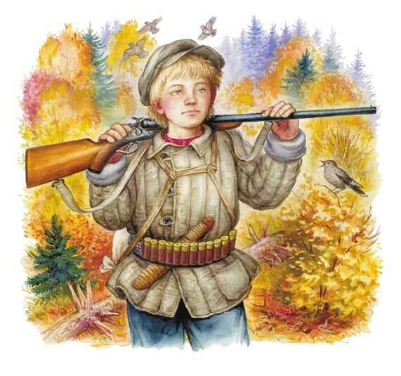 «Ранил!» – встрепенулся Васютка и бросился за подбитым глухарём.