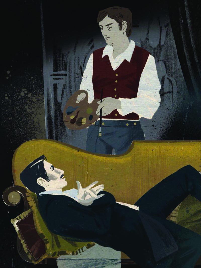 In the centre of the room, clamped to an upright easel, stood the full-length portrait of a young man of extraordinary personal beauty, and in front of it, some little distance away, was sitting the artist himself, Basil Hallward, whose sudden disappearance some years ago caused, at the time, such public excitement and gave rise to so many strange conjectures.