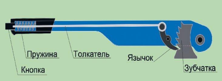 На рисунке – так называемый храповой механизм. Его так назвали потому, что при срабатывании он издает звук, похожий на храп.