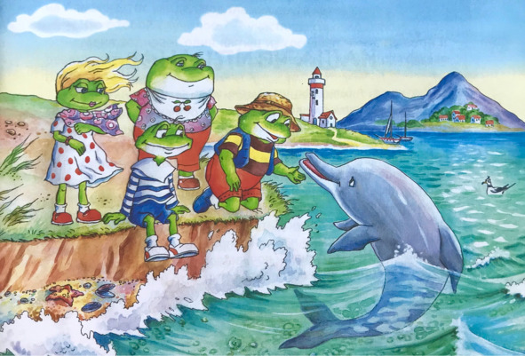 В тот же вечер Лямзик рассказал о дельфине всем лягушатам. Они решили не откладывать знакомство и уже на следующий день пришли к морю целой компанией.