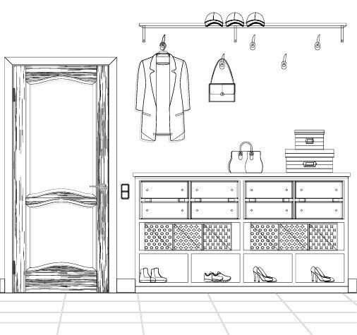 Слоган «Показать все, что скрыто» в прихожей совсем не работает – здесь скорее нужно внедрить правило: скрыть все, что еще не скрыто. Чтобы лишние предметы не раздражали вас и то, что хочется спрятать, не оказалось на виду у гостей, организуйте продуманные системы хранения. Если пространство позволяет, для верхней одежды стоит сделать «невидимый» шкаф, который маскируется под стену.