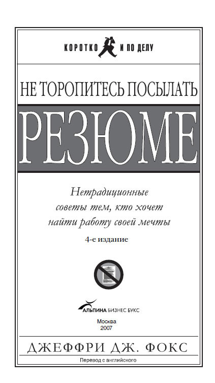 Не торопитесь посылать резюме: Нетрадиционные советы тем, кто хочет найти работу свой мечты. — Пер. с англ. — 4-е изд. — М.: Альпина Бизнес Букс: АСТ, 2007. — (Серия «Коротко и по делу»).