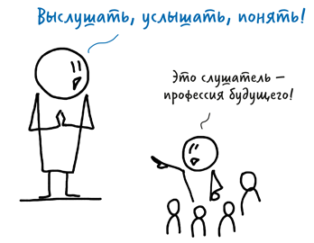 В моей работе это элемент. У меня есть цель, с которой я пришел к собеседнику, и я его слушаю, чтобы получить информацию. И я вижу, как с каждым годом растет «невыслушанность», вижу, насколько никто никого не слушает. В бизнесе руководитель не слушает подчиненных. А у людей просто куча идей как развить дело, много мыслей, как помочь этому предпринимателю. Но он не слушает. Как говорится, нет пророка в своем отечестве.