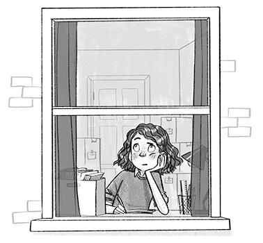 Тилли удовлетворённо оглядывала получившуюся конструкцию. С этого момента она была защищена от безрадостного вида окрестностей и могла спокойно рисовать, сидя за столом. Или… делать домашние задания.