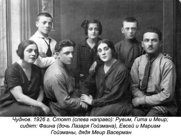Однако, по семейным рассказам мой прапрадед, Лейб Гойзман из местечка Чуднова Волынской губернии (ныне — районный центр Житомирской области на Украине), был известным скрипачом-клезмером и стоял во главе оркестра. А, основываясь на семейных преданиях, на старинных документах и фотографиях, можно утверждать, что, по крайней мере, уже к середине 19 века Гойзманы считались семьей потомственных музыкантов-оркестрантов.