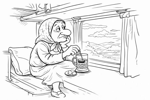 Соседка — женщина лет пятидесяти, ехавшая напротив бабки Фимы, проснулась на рассвете от стука чайной ложки о стакан. Она приоткрыла глаза, приподняла голову. В тусклом свете вагона разглядела бабку Фиму. Та в полудреме, завалив голову набок, размешивала сахар в чае.
