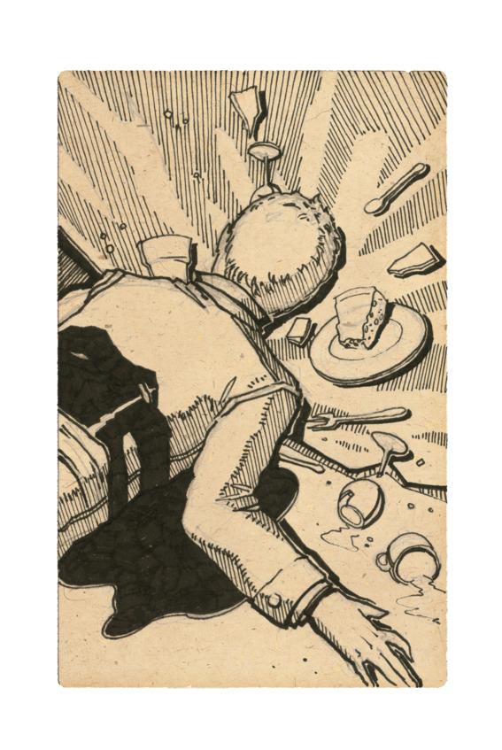 Грохот и звон бьющейся посуды, раздавшись за дверью, прервали мои слова. Удивленный камердинер пошел выяснять, что случилось. Мы с надворным советником двинулись следом. Жан Каню топтался за столом и разглядывал на полу что-то, столешницей скрытое от нашего взора. Неожиданного гостя видно не было. Вероятно, опрокинув какую-то вещь, он смутился и убежал. Что бы ни разбил незнакомец, а только сведения от генерала Вилсона были намного важнее. И огорченный исчезновением гостя, я буркнул: