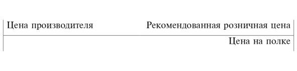 Таким образом, имеем отрезок, на краях этого отрезка цена производителя и рекомендованная розничная цена — цена товара «на полке».