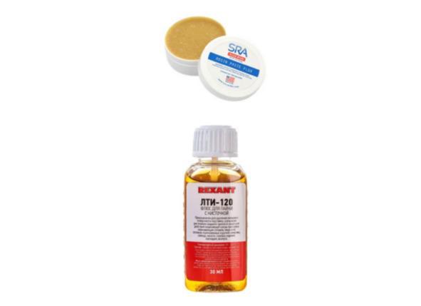 Флюс. Припой для радиомонтажных работ бывает проволокой или трубчатый — с флюсом внутри. Флюсы в припоях и вне припоев очень различаются по своим свойствам: от обычной канифоли до агрессивных составов, пригодных лишь для лужения кастрюль. Поэтому во флюсе важны две характеристики: наличие остатков и агрессивность. По крайней мере, в обычных оловянно-свинцовых или оловянно-медно-серебряных припоях для пайки радиоэлектронной аппаратуры.