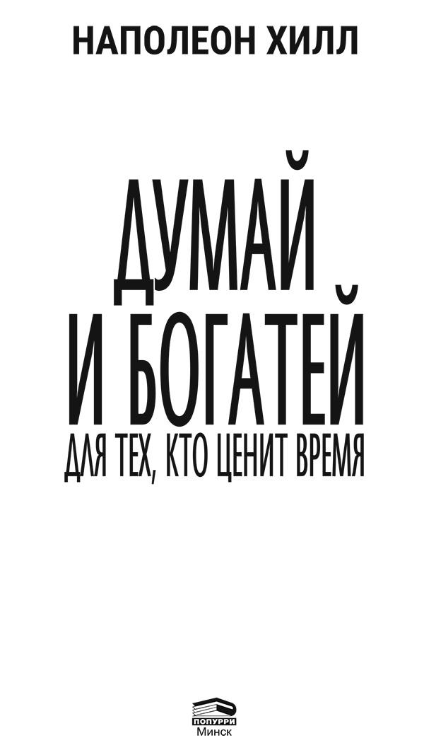 Думай и богатей : Для тех, кто ценит время / Н. Хилл ; пер. с англ. И. Зинкевич. — Минск : Попурри, 2023.