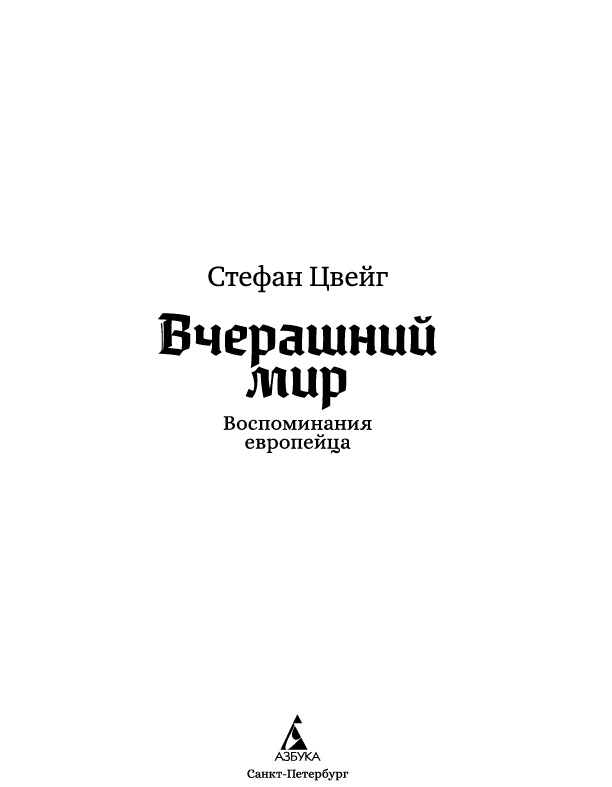 Вчерашний мир : Воспоминания европейца / Стефан Цвейг ; пер. с нем. Г. Кагана. — СПб. : Азбука, Азбука-Аттикус, 2025.